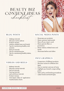 CHOOSE YOUR FREEBIE, CLICK THE IMAGE TO DOWNLOAD INSTANTLY! The Beauty Business Checklist Beauty Biz Content Ideas Worksheet Printable Inventory Template Beginner to Booked Out Mindset Journal